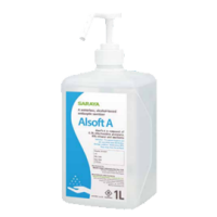 Prepared environment with a clean sink, rubbing method procedure panel mounted on the wall, and alcohol-based hand rub.