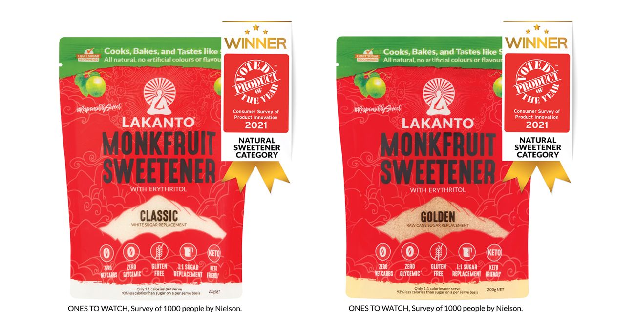 Lakanto Sweetener wins Product of the Year 2021 in the Natural Sweetener category, while named One to Watch in the Consumer Survey of Product Innovation in Australia.