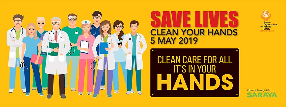 SARAYA, following our efforts in previous years, is participating again in the May 5th campaign lead by the World Health Organization (WHO) promoting hand hygiene awareness in order to reduce healthcare-associated infections. With the slogan “Clean care for all - it's in your hands” the focus this time around is to promote the global movement to achieve universal health coverage (UHC), i.e. achieving better health and well-being for all people at all ages.