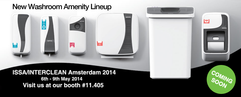 SARAYA is pleased to announce our participation in ISSA /Interclean Amsterdam 2014 from May 6th to 9th. Our brand new washroom amenity lineup will make its appearance at the show. This new amenity lineup is a complete solution for changing washrooms into a hygienic and comfortable space with dispensers for soap, sanitizer, toilet seat cleaner, air freshener, toilet tissue, and paper towels, as well as a dust bin. The design takes a modern approach to interior design with a prominent black and white pattern reminiscent of Japanese brush strokes, both restrained and expressive at the same time to add an elegant flair to the washroom. It is an example of high technology and usability, brilliantly integrated and improves on typical dispensers. Visit the SARAYA booth at 11.405 for a full demonstration of this new washroom amenity line.