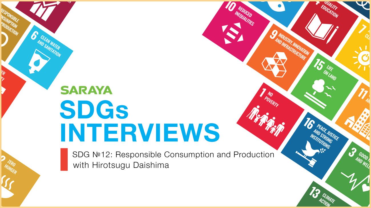 SARAYA is one of Japan’s leading companies that implement the United Nations Sustainable Development Goals (SDGs). This is the fifth chapter of SARAYA’s SDGs interview series telling the story of those behind SARAYA and how they are working to achieve these goals. In this edition, we spotlight Hirotsugu Daishima, the director of the Corporate Communications Division, talking about his unique background and SDG number 12: Responsible Consumption and Production.